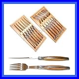 .../ LAGUIOLE - 6 steak knives + 6 matching forks - real OLIVE WOOD ! (exotic luxury dinner table flatware/cutlery setting for 6 people - gift-wrap available! - shipped from France) / Wusthof Knives